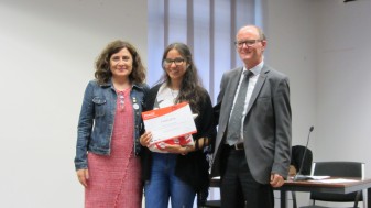 I per últim, però no per això menys importat és el premi que ha aconseguit la nostra alumna Bárbara Cruz López. Aquesta ha quedat finalista de la 8a edició del concurs literari Ficcions, “L’aventura de crear històries” , iniciativa de l’Associació de Mitjans d’Informació i Comunicació (AMIC) per promoure la lectura i l’escriptura en català arreu dels països de parla catalana. Cal destacar que és un premi molt valorat en l’àmbit educatiu, i molt difícil d’aconseguir. Barbarà recollí el seu premi el passat 31 de maig al Centre de Cultura Contemporània Octubre de València de mans de Josep Ritort, director gerent de l’AMIC i Imma Àngel Carbonell, representant de la Direcció General de Política Lingüística del Govern Valencià. (Us enviem en arxiu adjunt la foto del lliurament del premi a Bárbara).