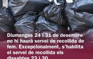 No hi haurà recollida de fem el 24 i el 31 de desembre. El servei s’habilita per als dies 23 i 30 de desembre. […]